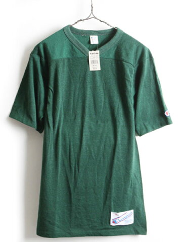 Champion コットン ナイロン Vネック フットボール Tシャツ ( 男性 メンズ S ) 古着 80年代 緑 商品説明80年代チャンピオンのフットボールTシャツです。