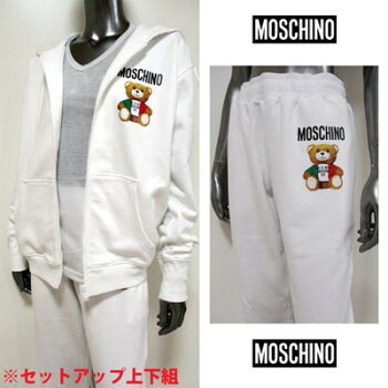 ギフト対応モスキーノ(MOSCHINO)レディース セットアップ上下組 トップス パンツ ロゴ 2color MOSCHINO BEAR転写ロゴプリント付きセットアップジャージ 白/黒V1709+V0309 0527 1001/1555 (R166100) ブランドモスキーノ(MOSCHINO)シーズンスタイルレディース セットアップ上下組 トップス パンツ ロゴ 2color MOSCHINO BEAR転写ロゴプリント付きセットアップジャージ 白/黒素材コットン 100%仕様●生産国ポルトガル ●サイズ:身幅/袖丈/肩幅/着丈 セットアップ上 XS(36):54cm/61cm/50cm/60cm S(38):56cm/62cm/51cm/62cm/ M(40):57cm/63cm/52cm/63cm L(42):58cm/65cm/56cm/63cm サイズ:ウエスト/股上/股上後/股下/裾幅/渡幅 XS(36):34cm/26cm/37cm/82cm/19cm/30cm S(38):36cm/27cm/38cm/84cm/19cm/32cm M(40):38cm/28cm/39cm/85cm/20mc/33cm L(42):38cm/29cm/41cm/83cm/21cm/33cm ※単位はcm※平置き実寸のため、多少の誤差は御了承願います。