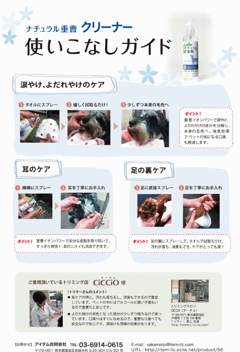 ■涙やけスッキリ、目に優しい重曹クリーナー。